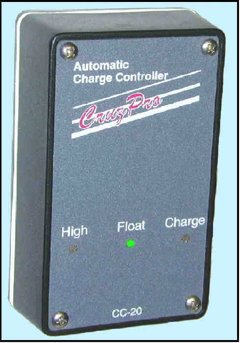 The CruzPro CC-20 Automatic Charge Controller senses battery voltage and connects/disconnects your charging source (solar panels, dumb charger) depending on the battery voltage. The CC-20 enables you to leave your charging source connected permanently without fear of damaging overcharges or excess electrolyte loss. You are assured you have a fully charged battery whenever you need it.