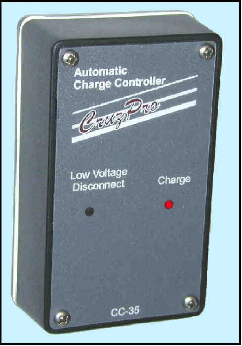 The CC35 Automatic Charge Controller is a three step regulator that senses battery voltage and adjusts the regulation to deliver a bulk, absorption and float voltage from your solar panels or dumb battery charger. The CC35 enables you to leave your charging source connected permanently without fear of damaging overcharges or excess electrolyte loss. You are assured you have a fully charged battery whenever you need it.