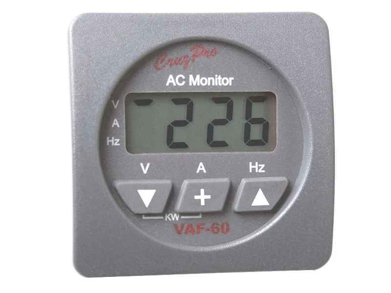 The VAF60 displays AC voltage from 90 to 300 VAC RMS, AC current