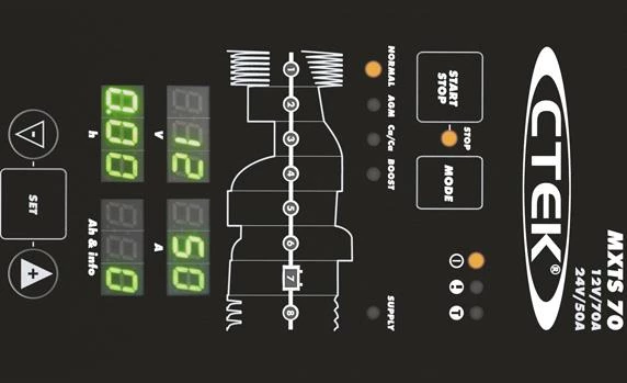 indication (Ah) for battery condition control. The MXTS 70/50 is